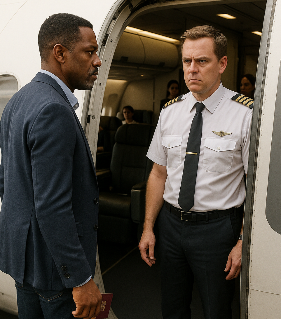 The pilot gave a short, dry laugh. “Let’s not make this awkward. People in first class don’t usually… dress like you.” His eyes flicked, almost imperceptibly, toward Malcolm’s dark skin before turning cold again.