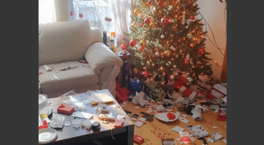 When we returned, it looked like a stranger’s party had broken out in our living room.