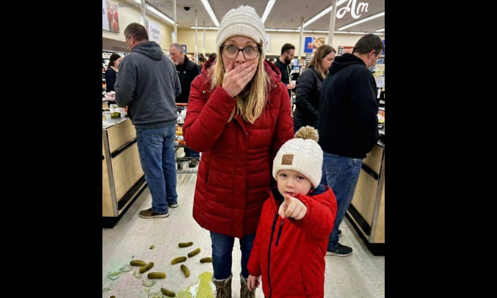 Her grip loosened, and the glass jar of pickles slipped from her hands and shattered on the floor between us. Pieces of greens, brine, and broken glass splattered everywhere, but she didn’t even flinch!