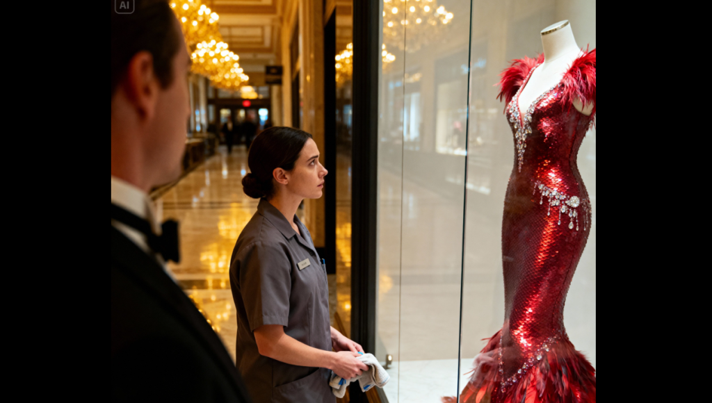 The red dress with rubies behind Mariana —the same one he had scorned— bore the stamp of his name.