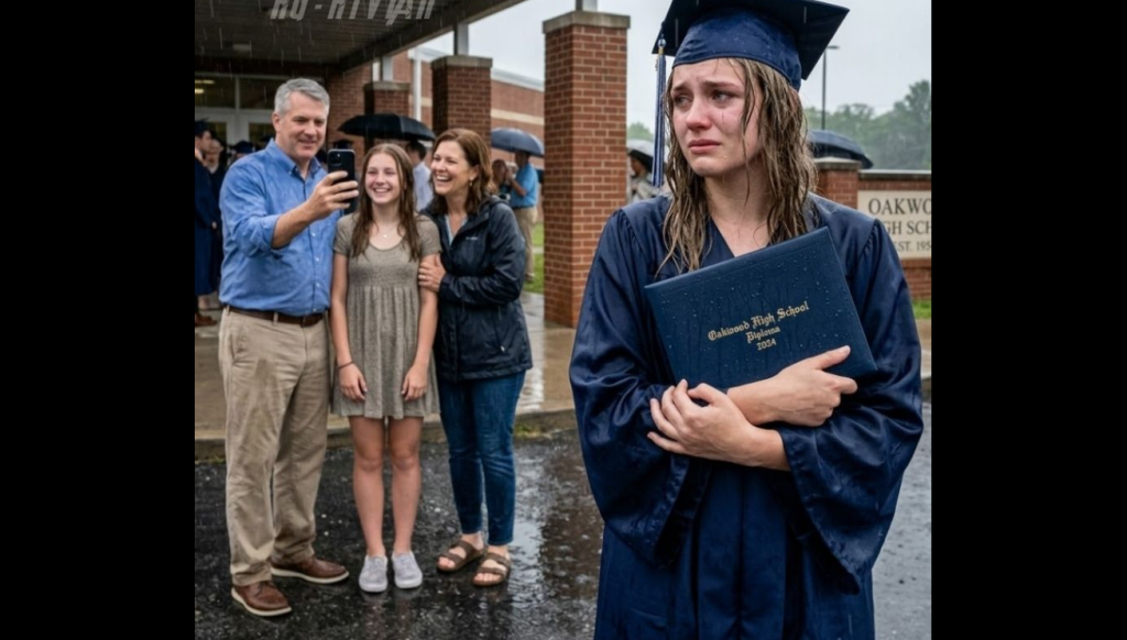 I stood there, a few yards away in the rain, watching my own family pose together like an advertisement for some glossy brochure about success and stability. Grace grinned, her hair curled perfectly, her white honor cord draped like a blessing over her shoulders. She hadn’t earned honors. I had. But I was the one still standing in the parking lot, rain dripping from my eyelashes, clutching a rolled-up diploma with my name on it.