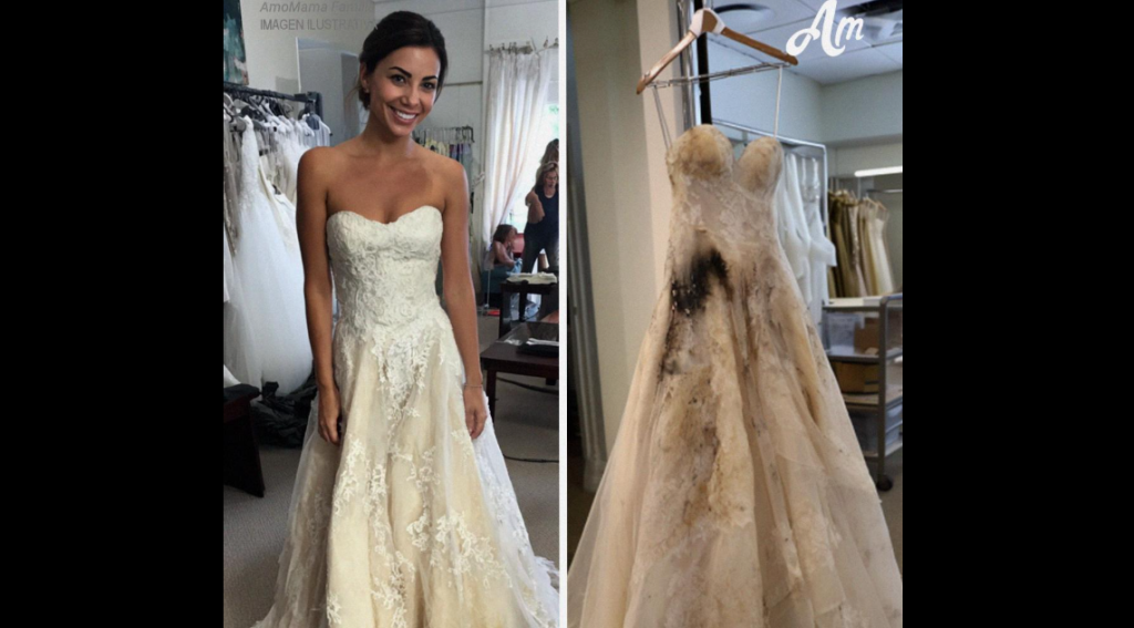 “Honey, don’t scream. I just wanted to help. The fabric was a little wrinkled, so I thought ironing your dress would be the right thing to do. I know how important it is to look your best at the altar.”